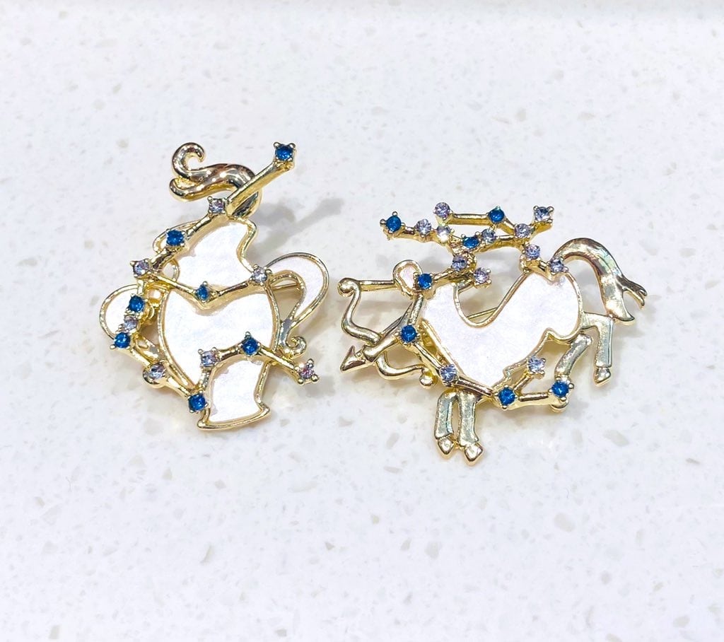ゴールドにシェル素材とブルーとクリアストーンをあしらった落ち着いた色合いのブローチです。