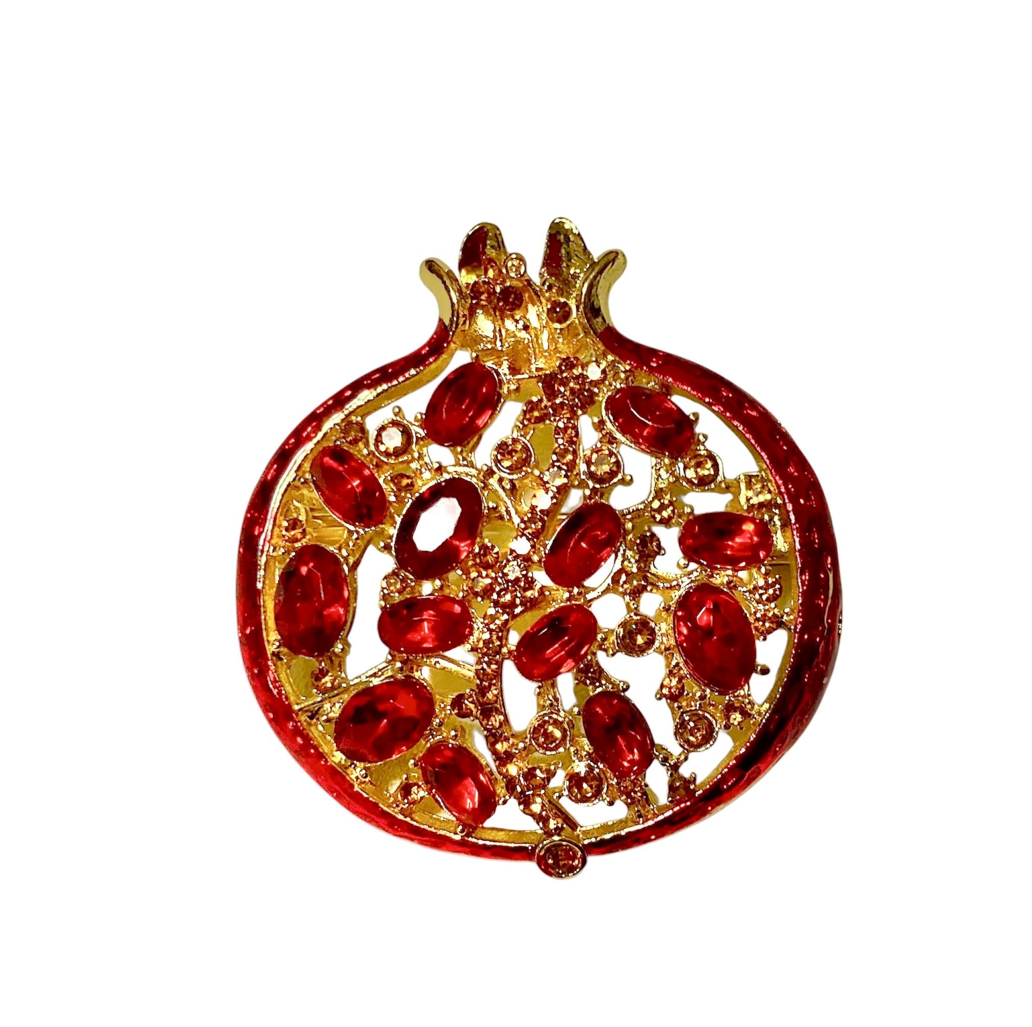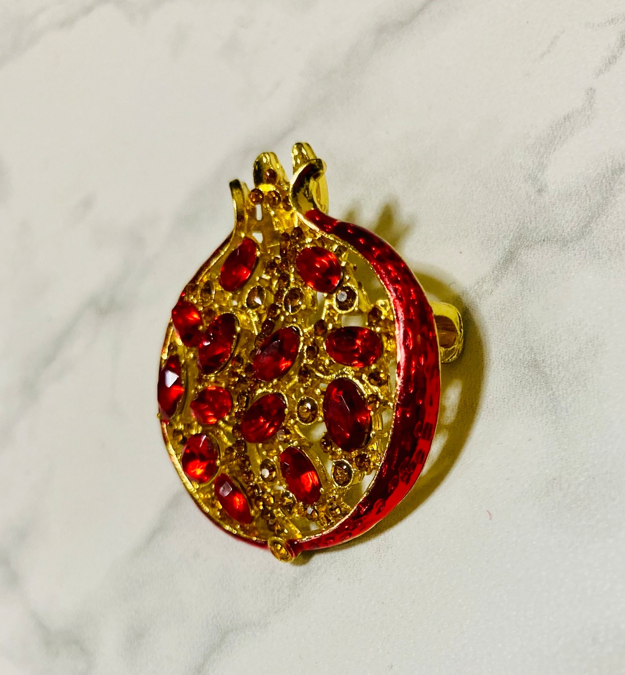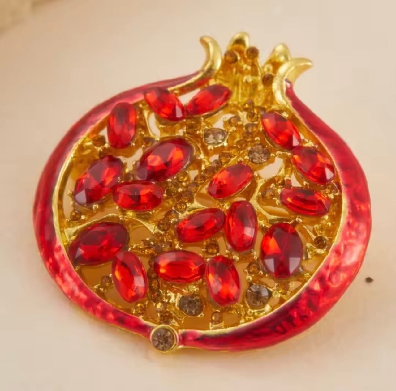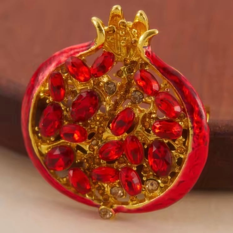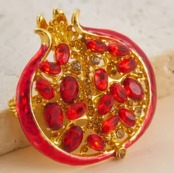 ゴールドと鮮やかな赤が華やかなザクロのブローチです。