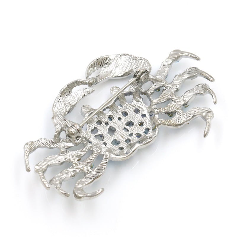 ユニークな蟹モチーフのピンブローチです。 ライトブルーメインの色合いがとても涼しげな印象です。 サイズ:5.3㎝X3.2㎝ 素材:合金・ラインストーン
