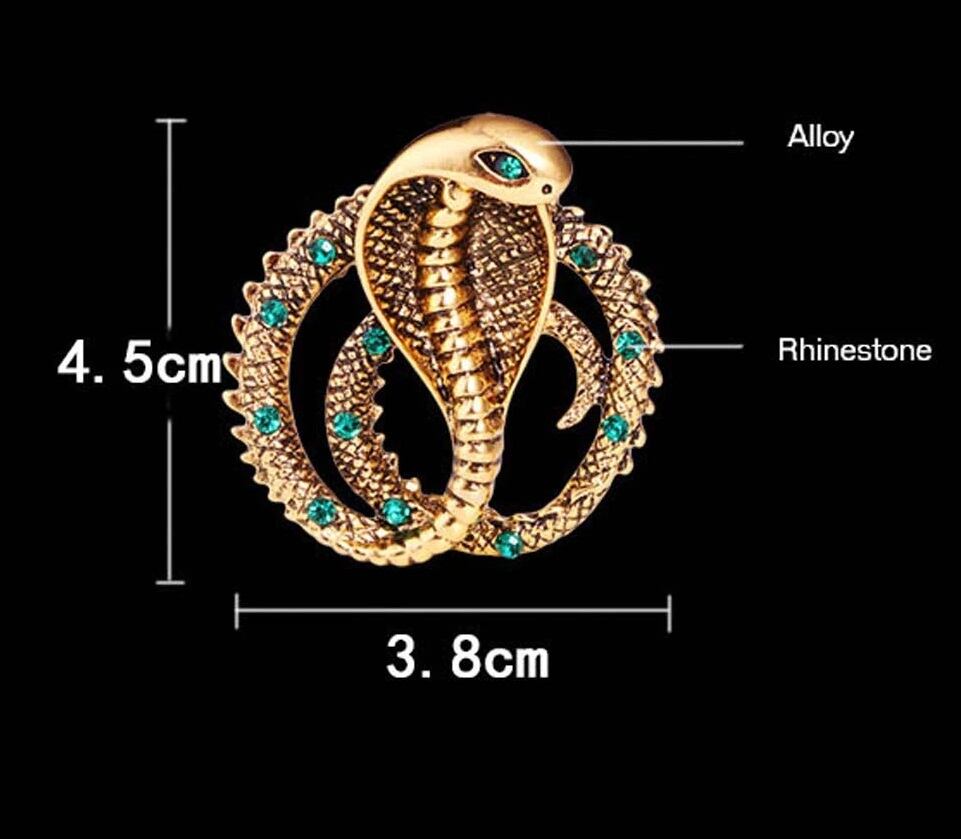 コブラのラインストーンブローチ☆エメラルドカラー 黄金 ヘビ ストールピン | JET-MINT