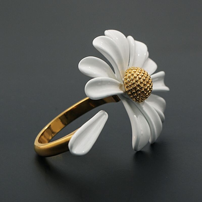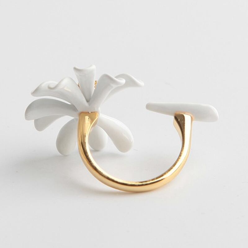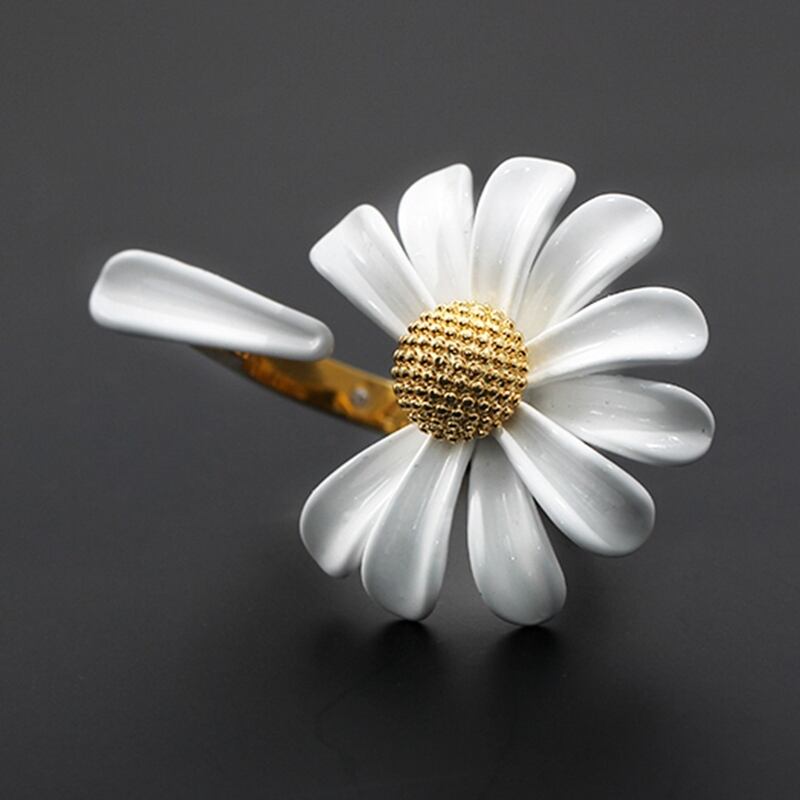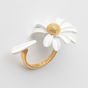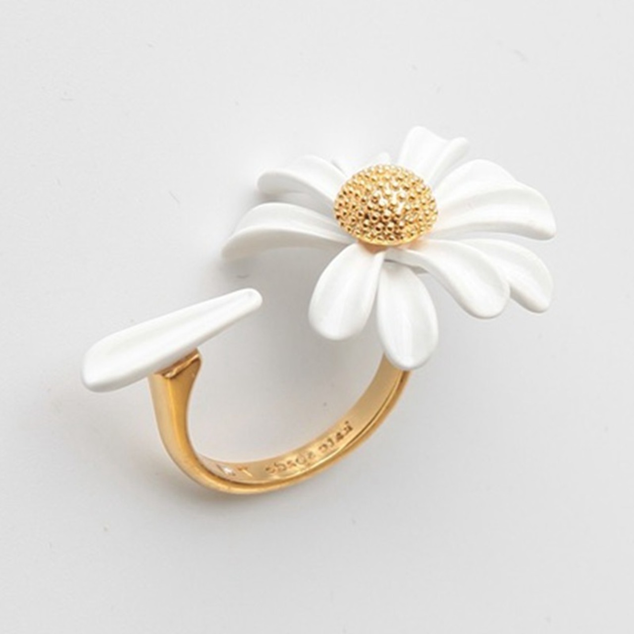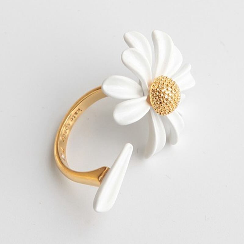 春らしいひなぎくの指輪です。 白く可憐な花びらにゴールドは映えます。 フリーサイズでなのでどちらの指にも着けられます。 サイズ:リング フリー/花 約 ㎝ 素材:エナメル、合金