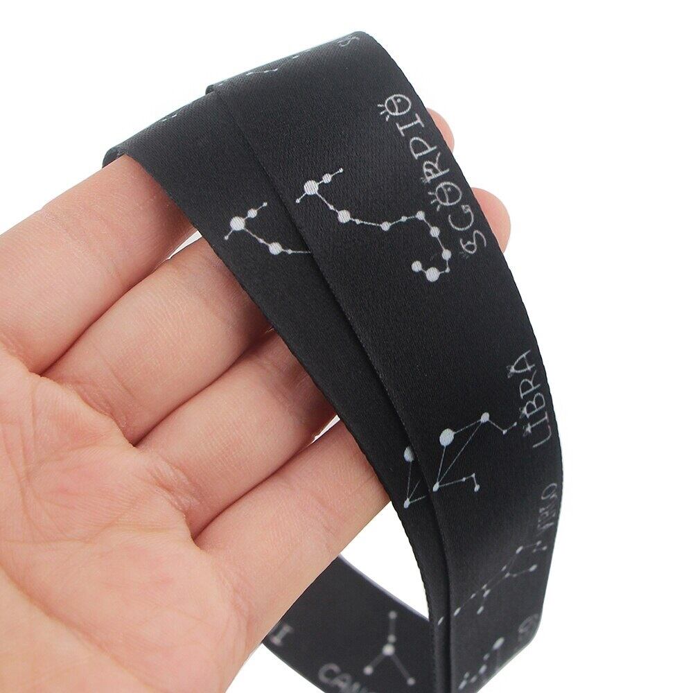 星座が散りばめられたカードケースと、取り外し可能なネックストラップのセットです。